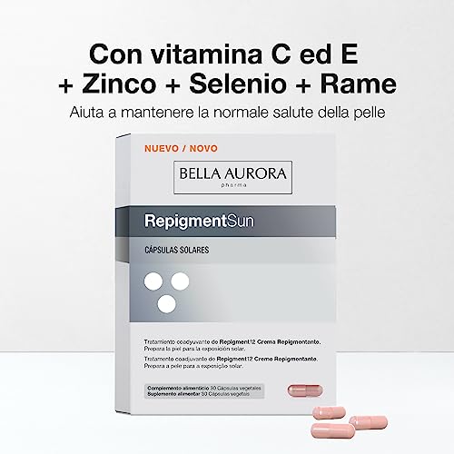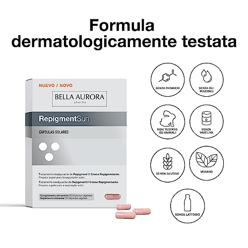 Bella Aurora, Repigment12 & RepigmentSUN, Trattamento Per Attenuare Le Conseguenze Estetiche Delle Macchie Bianche Del Viso e Del Corpo (Capsule Solari - RepigmentSUN)