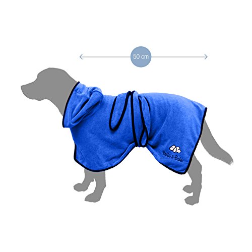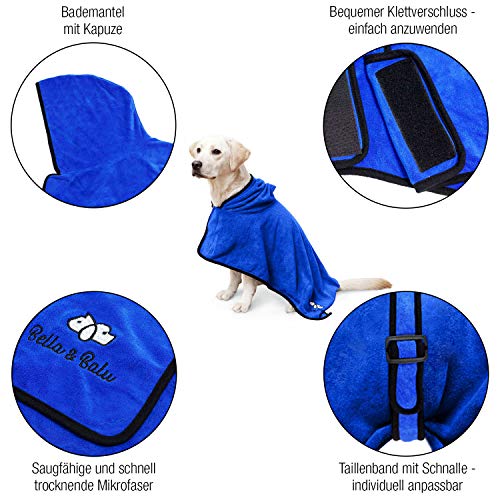 Bella & Balu Accappatoio per cani (M Blu) - Accappatoio per cani in microfibra con cappuccio e cintura regolabile per asciugare il cane dopo il bagno, in spiaggia o dopo la pioggia