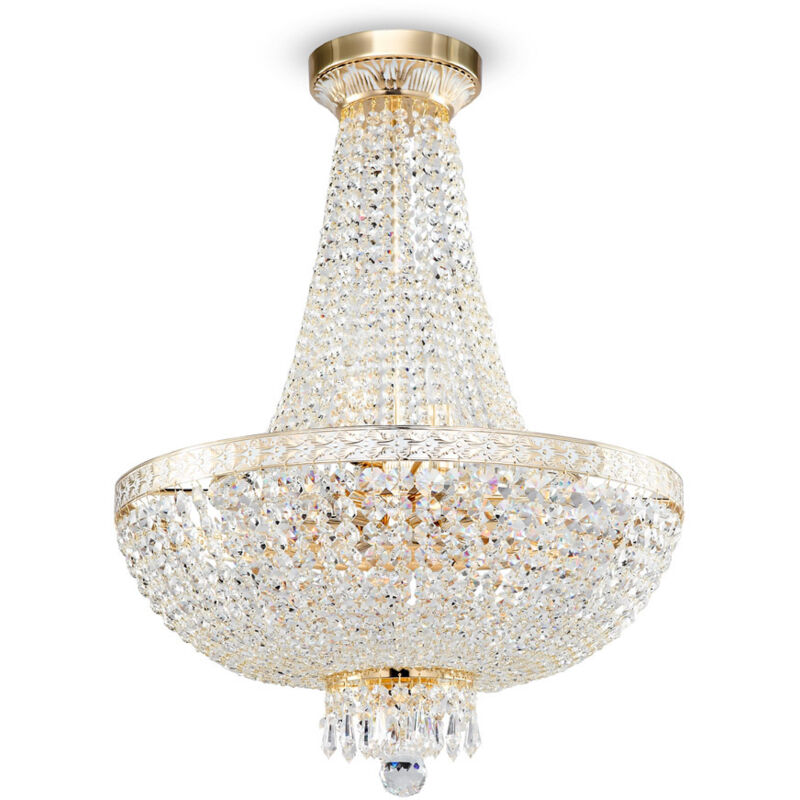 Bella Lampadario Grand Oro e Cristallo, 8 Luci, E14 | Finitura: Oro | Altezza: 65 cm | Altezza massima: 174,10 cm | Diametro: 50 cm | Tipo di lampada: E14 | Numero di luci: 8 | Grado di protezione IP: IP20 | Potenza (max): 60 W | Peso (kg): 7