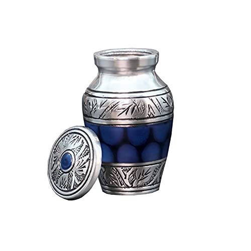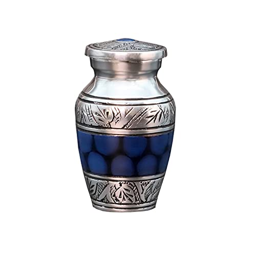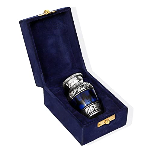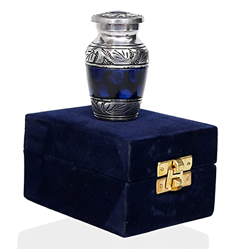 Hlc Bella piccola urna ricordo per ceneri umane con 1 sacchetto in velluto, mini urna per ricordi - bella urna in ottone blu pacifico inciso a mano - Mini urna commemorativa economica (3 cu.in)