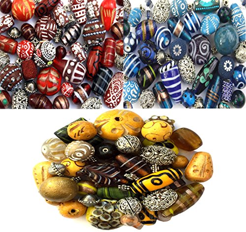 3 confezioni di unico fatto a mano indiano, argento tibetano in vetro e perline di legno.