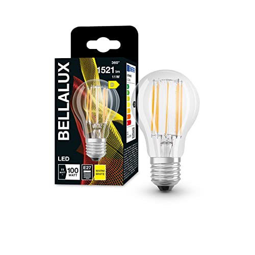 BELLALUX Lampada LED, Base E27, Bianco caldo (2700K), Filamento chiaro, Forma della lampadina, Sostituzione per lampadina convenzionale 100W, 1 confezione