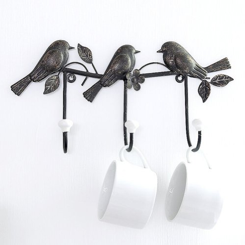 Belle Maison - Appendiabiti con 3 ganci, in ferro, motivo uccelli