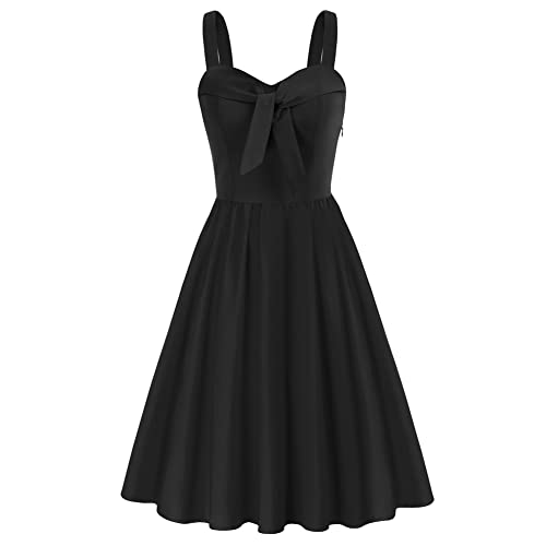 Belle Poque Abito da Sera Elegante Senza Maniche Vita Alta Scollo Cuore Tinta Unita Nero Festa Cerimonia bp358-1 M