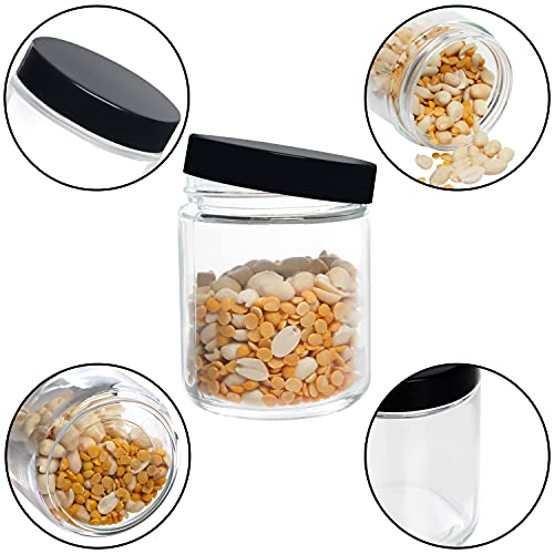 BELLE VOUS Barattolini Vetro Piccoli con Tappo in Plastica Nera (8pz) - Contenitori Alimentari Vetro Ermetici da 240 ml per Cucina e Decorazioni Casa - Barattoli Porta Spezie e Contenitori Cosmetici