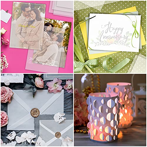 VERSATILE: Questi fogli carta lucida per stampante hanno molti usi e sono ottimali con matite, penne stilografiche e fine maker. Ottime per cartamodelli, disegnare, copiare, ricalcare, stratificare, trasferire, scrapbooking e design grafico. È perfetta per realizzare biglietti, inserti per biglietti, inviti, buste, numeri di tavolo, sovrapposizioni di foto, inviti di nozze o per feste, decorazioni e carta da regalo. Usala per copiare lettere, numeri e animazioni
