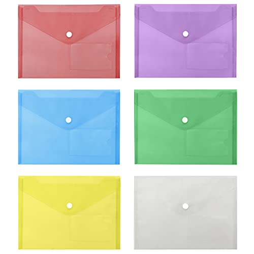 Belle Vous Set da 24 Cartella Portadocumenti A5 - Cartellina Porta Documenti A5 Colori Assortiti con Chiusura a Bottone e Porta Etichetta - Cartellette Portadocumenti Trasparente per Casa ed Ufficio