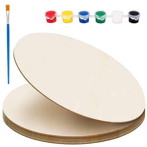 BELLE VOUS 8pz Cerchi Creativi in Legno Grezzo Rotondi - Dischi Legno Naturale, Fetta di Tronco Legno per Artigianato, Targhette, Decorazioni ed Ornamenti (Con vernice e pennello)