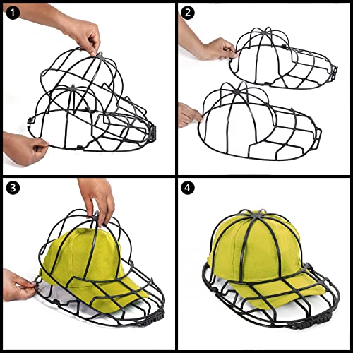 RISPARMIA TEMPO ED ENERGIA: Usa i porta cappelli per tutti i tuoi cappellini da baseball preferiti, cappelli sportivi, cappelli da golf e qualsiasi altro cappello. Risparmierai tempo ed energia e non dovrai buttarli via. Queste gabbie sono altamente portatili, il che le rende ideali per l'uso domestico, i viaggi di lavoro e le vacanze. Non solo sono ideali per lavare i tuoi