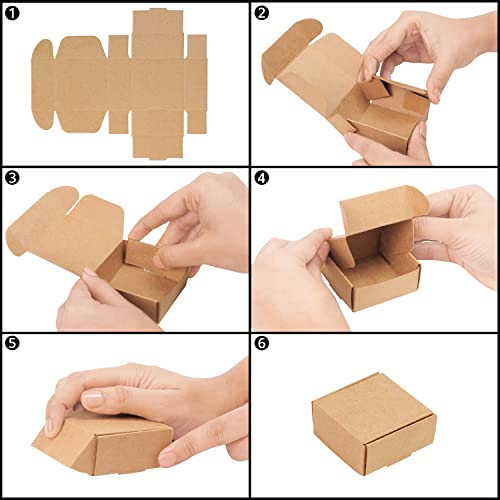 Belle Vous Confezione da 50 Scatoline Carta Kraft Marroni - 5,6 x 5,6 x 2,5 cm - Scatole Regalo Facili da Assemblare - Scatole Bomboniere per Feste, Compleanni, Matrimoni