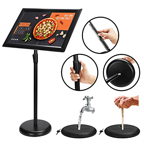 BELLE VOUS Espositore A3 Poster Board Nero - Espositori per Negozi Piedistallo in Alluminio - Espositore da Terra Porta Avvisi Verticale e Orizzontale per Matrimoni, Attività e Porta Menu Ristorante