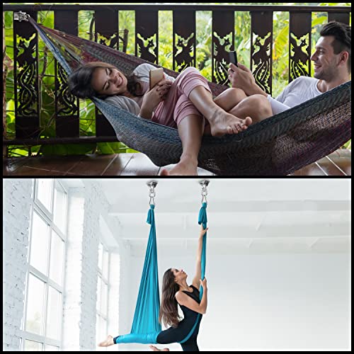 GANCI MULTIUSO: Ideale per installare e appendere qualsiasi attrezzatura montata a parete, questi ganci soffitto girevoli convenienti/flessibili possono essere utilizzati in tanti modi. Come gancio amaca, gancio per altalena, sedie sospese, gancio per sacco boxe e altro ancora. Sosterrà facilmente la tua attrezzatura per molto tempo. Può essere utilizzato anche per decorazioni più picc