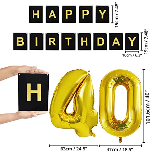 LETTERE E NUMERI IN LAMINA: Ogni set palloncini buon compleanno contiene lettere nere e dorate per scritta ”HAPPY BIRTHDAY”. Possono essere collegati con uno spago o disposti singolarmente. È incluso un numero ”40” gonfiati separatamente. Riempili di elio per farli galleggiare e lega dei pesi per tenerli. Evita di gonfiarli eccessivamente, poiché ciò potrebbe farli spaccare e scoppiare.