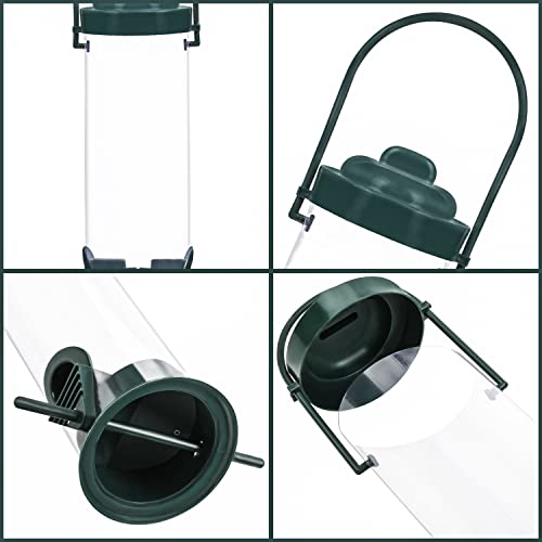 BELLE VOUS 3pz Mangiatoia per Uccelli Selvatici in Plastica da Esterno a Tubo - capacità 368 g - 2 Mangiatoia per Uccellini da Esterno a 2 Uscite- Mangiatoia Uccelli per Semi Misti, Niger, Girasole