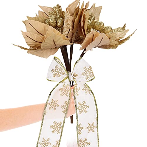 USI MULTIPLI: Usa il nostro nastro per decorazioni per più progetti di artigianato! Usalo per la disposizione dei fiori e crea un bouquet festivo. Potresti persino usarlo per decorare un maglione o un vestito natalizio. Perché non usarlo per creare le tue decorazioni Natale oro e bianche? È decisamente versatile!