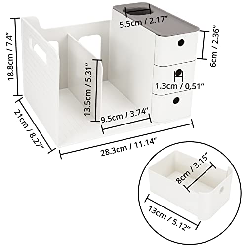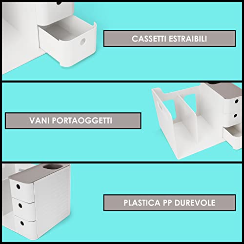 BELLE VOUS Organizer Scrivania con 3 Cassetti Bianco - Porta Penne per Scrivania Multiuso in Plastica - Organizer da Scrivania per Ufficio, Cartelle, Libri, Cancelleria e Oggetti per la Casa