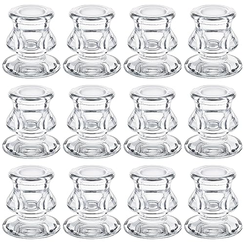 Belle Vous 12 Pezzi Portacandele Vetro Trasparente - Set Elegante di Candelabri Vetro per Ceri/Candele - Centro Tavola di Natale, per Matrimoni, Feste, Casa, Sala da Pranzo, Chiesa o San Valentino