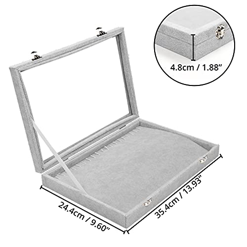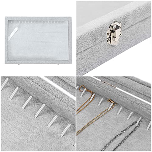 Belle Vous Porta Collane da Tavolo Espositore Gioielli Velluto Grigio - 20 Ganci e Coperchio in Vetro Chiusura a Chiave - Porta Gioielli Donna Impilabile - Espositore Collane, Orecchini e Bracciali