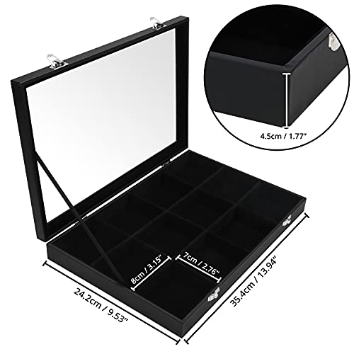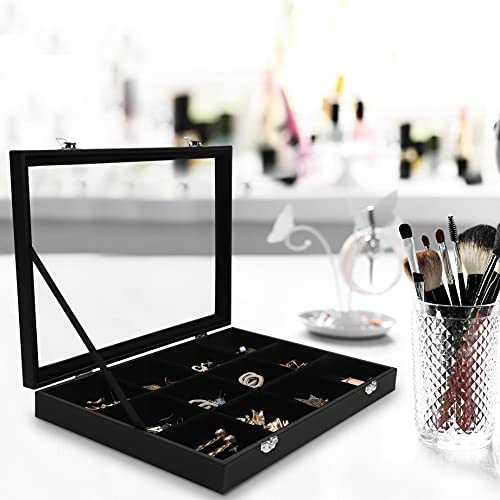 Belle Vous Porta Orecchini Espositore Gioielli Velluto Nero a 12 Slot con Coperchio in Vetro - Cofanetto Portagioie Donna Impilabile- Porta Gioielli Donna Espositore Orecchini, Porta Anelli Regolabile
