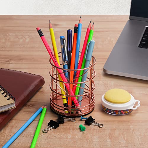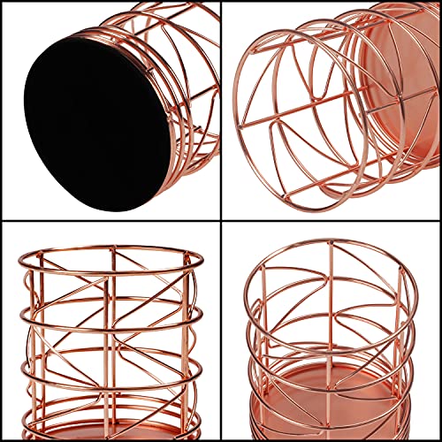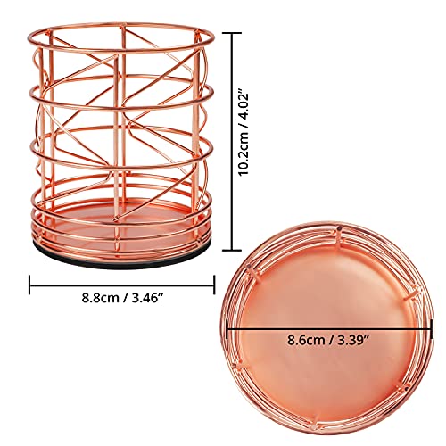 PACCHETTO DOPPIO: In questo set sono inclusi 2 porta pennelli make up. Sono L8,8 x A10,2 cm. L'apertura dei contenitori ha un diametro di 8,6 cm. Ogni vaso è realizzato con filo forte e robusto che è stato saldato in un design geometrico. Il metallo è rifinito con un rivestimento in rosa dorato che è super lucido e brillante. Ogni contenitore per pennelli make up ha un peso di 130 g.