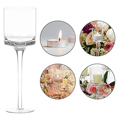 Belle Vous Set Portacandele Vetro Trasparente da 6 (3 Dimensioni) - Porta Candele da Tavolo Alto ed Elegante - Candelabri Vetro Ideali per Matrimoni, Decorazioni, Sala da Pranzo, Feste e Centrotavola