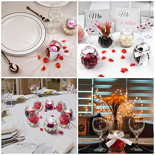 Belle Vous Set Portacandele Vetro Trasparente con Nastro Bianco (Set da 12) - Porta Candele da Tavolo Ideali per Matrimoni, Feste, Decorazioni per Casa, Centrotavola e Regali - Porta Tealight
