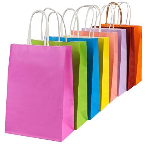8 COLORI VIBRANTI: Le nostre borse carta con manico per feste sono fatte di carta kraft di alta qualità da 140 g/mq, senza ritagli. Il materiale è spesso e robusto, mantenendo i tuoi oggetti ben protetti senza che le borse si rompano o si strappino. I sacchetti carta regalo sono disponibili in 8 colori (6 di ciascuno), tra cui blu, verde, lilla, fucsia, rosa confetto, arancione, giallo e marrone. Questo ti dà molta varietà e ti consente di abbinare le tue borse in base alle tue esigenze.