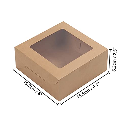 Belle Vous Scatole per Dolci in Cartone Kraft Marrone con Finestra (50 Pezzi) -15,2 x 15,5 x 6,3 cm - Scatole per Torte Usa e Getta - Biscotti, Cupcakes, Dessert e Torte