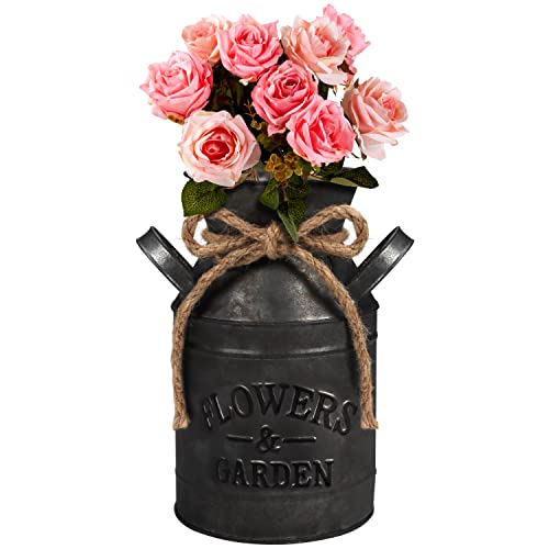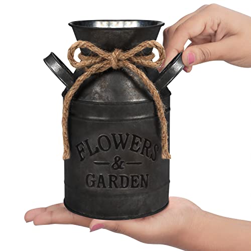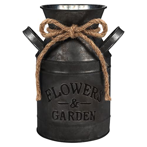 Belle Vous Vasetto Latta per Fiori Rustico - L11,3 x A 19 cm - Contenitore Latte Vintage Shabby Chic Galvanizzato - Vaso Shabby Decorativo per la Casa/Matrimonio e Piante