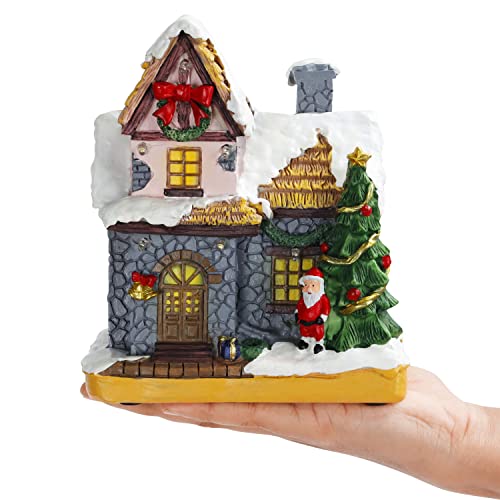 BELLE VOUS Villaggio di Babbo Natale in Resina con Luci a LED - Ornamento Decorativo a LED Bianco Caldo a Batteria - Villaggio di Natale con Statuetta Albero per la Casa Natale/Decorazioni Natalizie