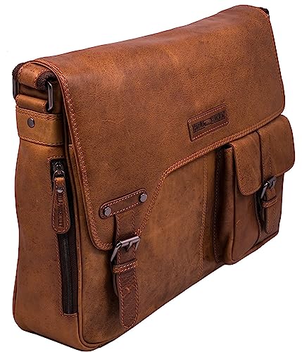 BelleBay Borsa ventiquattrore uomo grande in vera pelle | Valigetta portadocumenti | Tracolla Grande Messaggero Borsa | Vintage (Marrone)