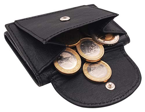 BelleBay piccolo Portamonete | Porta Moneta - Portafoglio | Porta Carta di Credito per Donna Uomo | Portafogli sottile in vera pelle di qualità | Porta Banconote - Porta Biglietti Minimalista (Nero)