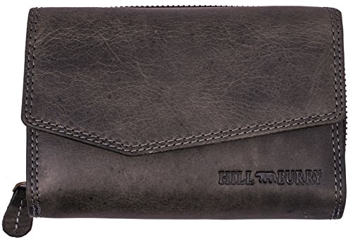 BelleBay Portafoglio Donna | Portamonete compatto in vera Pelle di Classe | Portafogli signore in pelle di qualità con un aspetto vintage | Porta Carte di Credito | Porta Banconote, grigio