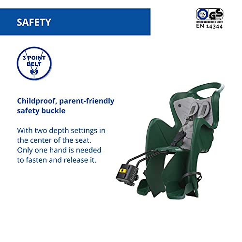 B bellelli Mr Fox 2021 - Seggiolino Posteriore per Bicicletta -Cuscino e Coprispalle in Ecopelle- per Bambini Fino a 22 kg, da 3 a 8 Anni - Si Fissa al Telaio - Verde