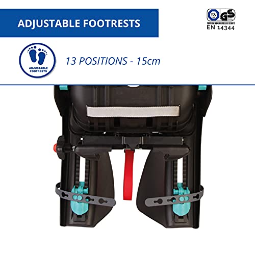 B bellelli Tiger - Seggiolino Posteriore per Bicicletta - per Bambini Fino a 22 kg, da 3 a 8 Anni - Si Fissa al Portapacchi - Turchese Bianco