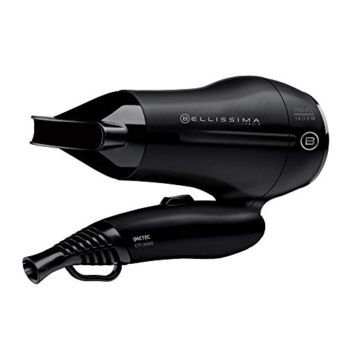 Bellissima Imetec CT1 2000 Asciugacapelli da Viaggio, 1400 W, Doppio Voltaggio, Manico Pieghevole, Tasto Regolazione Aria e Temperatura, Custodia da Viaggio Inclusa