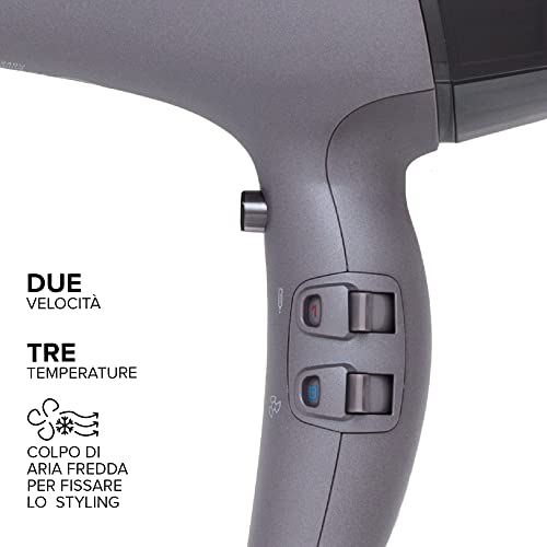 Motore professionale: il motore professionale AC da 2300 W offre lunga vita all'asciugacapelli e un'elevata portata del getto d'aria;