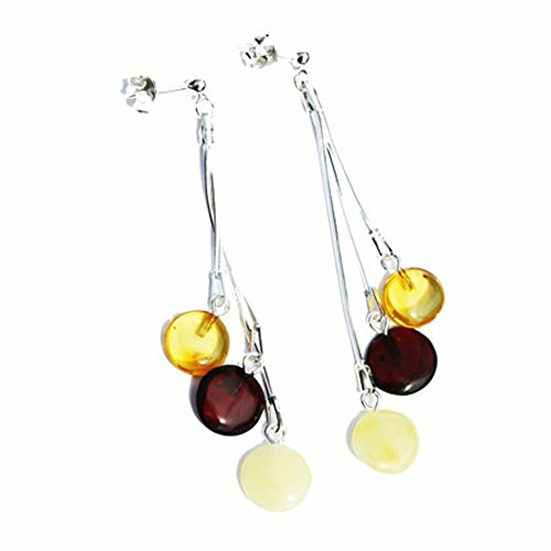 Bellissimi orecchini di ambra baltica multicolore - triplo catena compresse con argento Sterling della ricerca.
