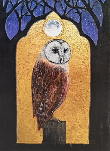 Bellissimo biglietto di auguri con luna dall'artista Hannah Willow, gufo regale seduto su recinzione, immagine iconica, biglietto di compleanno, biglietto artistico