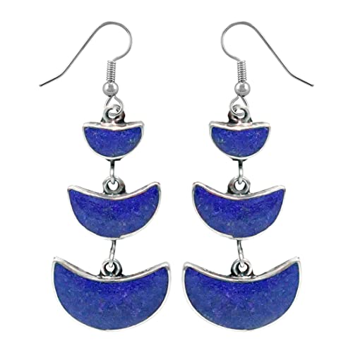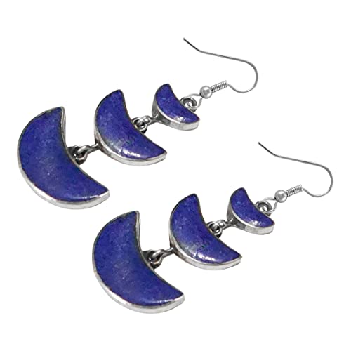 Bellissimo Mezzaluna Forma Compresso Lapislazzuli Intarsio Unico Progettista Etnico Tribale Zingaro Goccia Orecchini per le Donne Placcato Argento 925 Moda Boho Orecchini di Artigiano