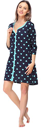 Bellivalini Camicia da Notte Premaman Manica 3/4 con Funzione Allattamento BLV50-115 (Cuori Turchese (Blu Marino), XXL)