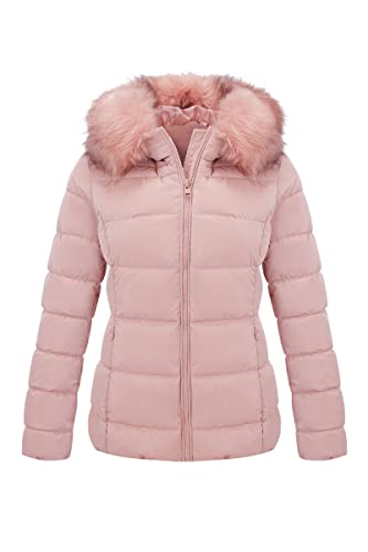 BELLIVERA Piumino Leggero da Donna Giacca, Cappotto Invernale Caldo con Collo in Pelliccia Staccabile 7695 Rosa XL
