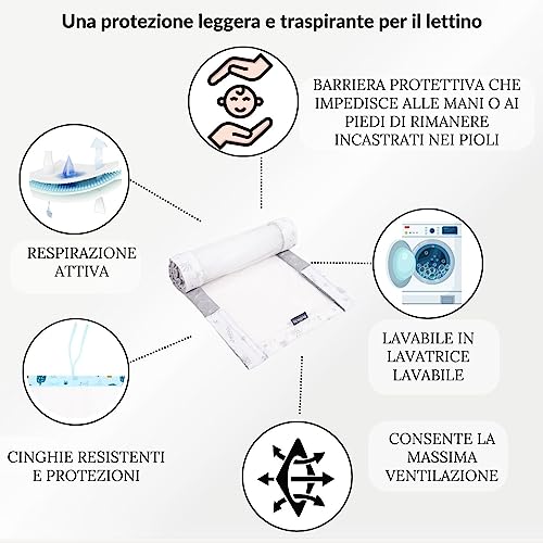 Montato in modo stabile - Il paracolpi lettino neonato grazie a molte cinghie lunghe 25 cm nella parte superiore e inferiore può essere fissato in modo estetico e saldo alla culla. Di conseguenza, non scivola, disturba o limita il bambino.