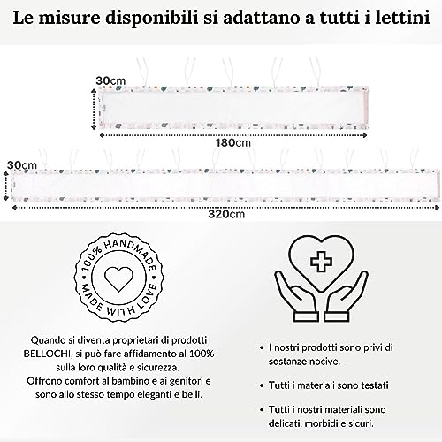 Bellochi Paracolpi Lettino 180 cm - Certificato OEKO TEX - Paracolpi Culla Universale in Morbido - Paracolpi per Letto Reversibile per Materasso 120x60 cm Rigel Star