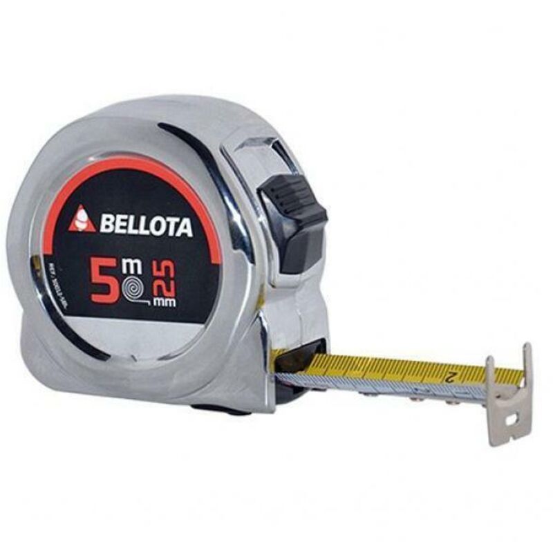 FLESSOMETRO PROFESSIONALE 5 M BELLOTA Flessometro professionale, con guscio in metallo, lunghezza massima 5 metri. Prodotto adatto per USO PROFESSIONALE. Caratteristiche Struttura in metallo Nastro in acciaio antitorsione rivestito in nylon con rivetti Freno ed avvolgimento automatico del nastro Certificato CE, livello di precisione II Rispetta la direttiva europea 2004/22/EC Larghezza nastro: 25 mm Lunghezza nastro: 5 mt