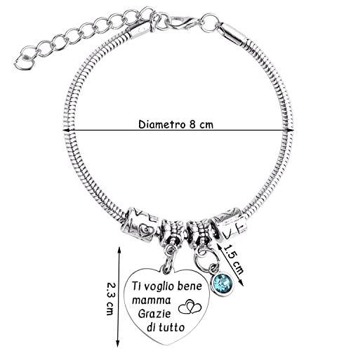 Regalo d'amore——Il bracciale mamma è inciso con le parole: "Ti voglio bene mamma, grazie di tutto". Aiuta la mamma a indossare questo braccialetto che simboleggia l'amore per la mamma in giorni speciali come il compleanno della mamma, la festa della mamma o il Ringraziamento, Natale. Grazie mamma per esserti preso cura di noi e amarci.