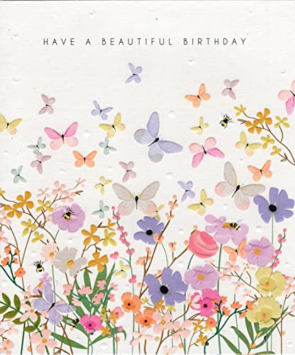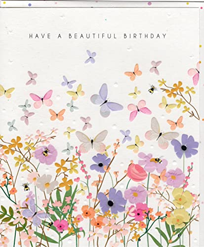 Belly Button Designs - Biglietto di auguri di compleanno con goffratura La serie "Meadow" trasmette armonia e calore naturale e propone buste abbinate BW006, “Meadow Butterflies”.