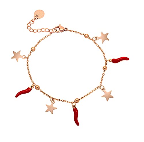❤️ Bracciale donna in acciaio con cornetti portafortuna smaltati e charms a tema