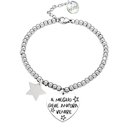 Beloved ❤️ Bracciale da donna, braccialetto in acciaio emozionale - frasi, pensieri, parole con charms - ciondolo pendente - misura regolabile - incisione - argento (BL4)