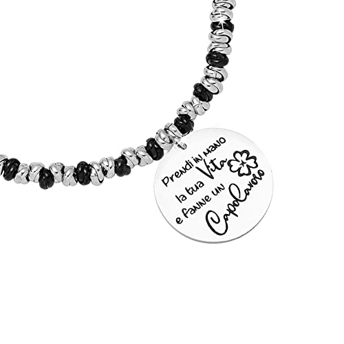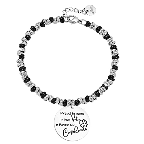 Beloved ❤️ Bracciale da donna, braccialetto in acciaio emozionale con nodini - frasi, pensieri, parole con charms - ciondolo pendente - misura regolabile - incisione (MOD. 5, Silver e Black)